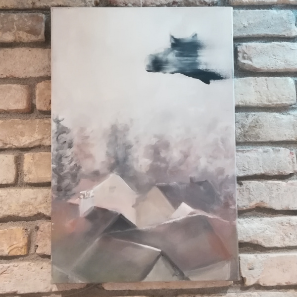 Azért kezdtem EP idézetével a kiállításom leírását mert a jelen látható képek festésekor az ő szövegeiben voltam már hosszú ideje és bizton mondható hogy írói módszere hatással volt az alkotói mechanizmusomra. Már ahogy én értem, hogy értem. ... ha értem. Nem vagyok biztos benne hogy értem azt amire reagálok, sokkal inkább értem a módot, a függőséget ahogyan a reakcióm megszületett és ezen képekben formát öltött. Egyfajta szabad absztrakciós játék eredményei a festmények kompozíciói. Miképpen a körülöttem lévő világra is intuícióból ered a válasz mint megfontolt értelmezésként. Erre utal a kollázsszerű kompozíció. Ahogy a tudatban megjelennek a képek mint egy leképzése a hatásnak, ami mindenkibe belecsapódik ha a együtt mozog a világgal, körülöttünk. Az ötlet bátorsága, talán pont csak ennyi és a festés szeretete. Talán igazabb mint egy nem értett valóság narratívája vagy illusztrációja. A megoldás egyszerűbb mint gondolnád!